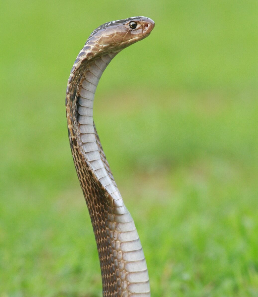 Et puis il y a les cobras cracheurs, comme par exemple le cobra cracheur africain, le cobra cracheur rouge ou le cobra cracheur mozambicain. Ils ont une capacité très particulière : ils peuvent projeter leur venin parfois jusqu’à quatre mètres de distance. Il convient de préciser que le venin de cobra a également un effet curatif sur l’homme : l’enzyme qu’il contient inhibe la coagulation du sang et peut donc être utilisé efficacement contre les virus. Le venin de cobra est une arme à double tranchant.