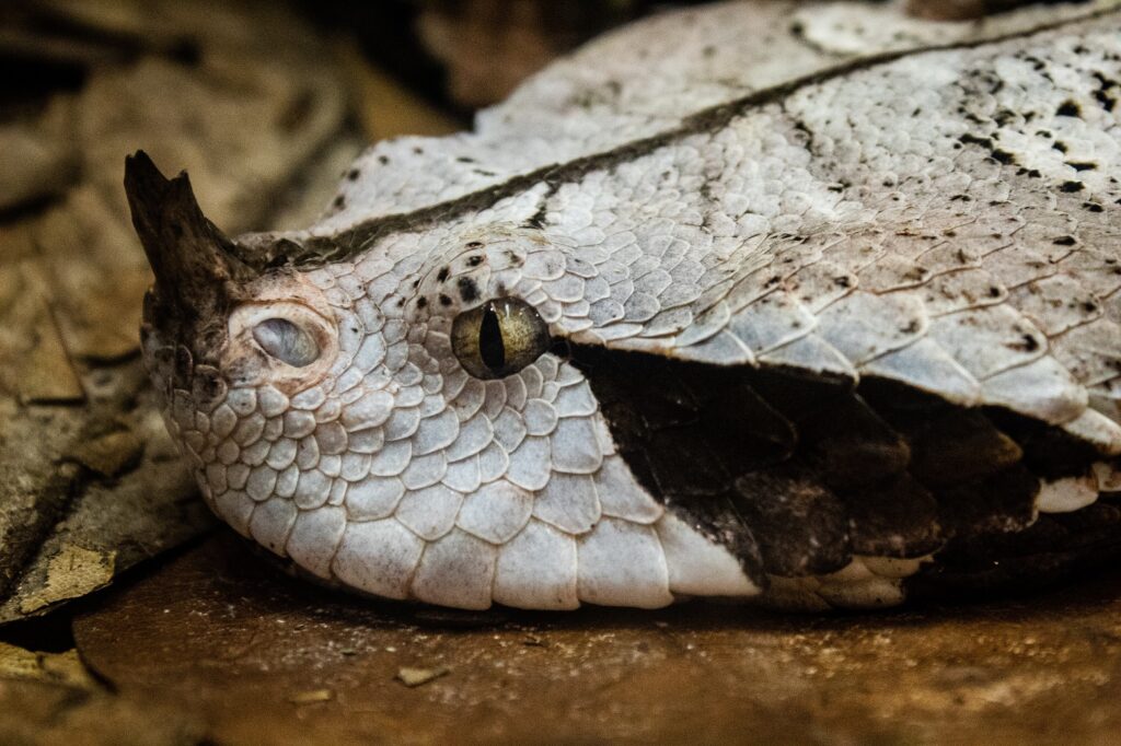 Parmi les serpents venimeux les plus lourds du monde, on trouve la vipère du Gabon oriental qui, avec ses 5 cm, possède également les crocs les plus longs de toutes les espèces de serpents. Mais comme elle se déplace plutôt lentement en raison de son poids énorme, les cas de décès dus à sa morsure sont extrêmement rares. Et puis il y a les vipères à cornes, comme par exemple la vipère rhinocéros ou la vipère à cornes du désert. Sur leur tête triangulaire, elles ont une, deux ou trois cornes, ce qui leur donne certainement le look le plus cool de tous les serpents.