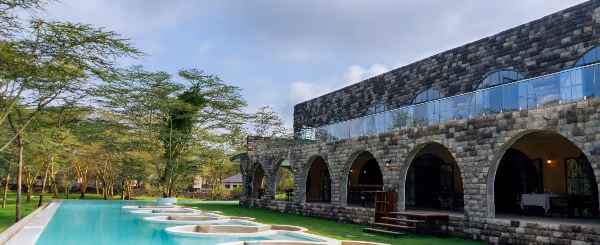 Giraffe Manor Tanzania est un lodge hors du commun installé dans le paisible Dolly Estate, juste à l’extérieur d’Arusha, où vous pourriez avoir la chance de voir, le matin, des girafes se promener alors que vous savourez votre café ! Entouré de pelouses verdoyantes, de jardins fleuris et de forêts d’acacias abritant des oiseaux, des gazelles, des élands, des zèbres et des gnous, le lodge offre un cadre paisible tout en étant assez proche de l’aéroport international du Kilimandjaro et du parc national d’Arusha. Une base idéale pour partir à l’exploration des parcs du nord. Avec des vues s’étendant jusqu’au mont Meru, vous pouvez admirer les couchers de soleil depuis la terrasse à l’étage, vous détendre sur des chaises longues ensoleillées au bord de la piscine à débordement, ou passer du temps dans le salon et le bar élégants. Ici, le restaurant sert des repas fraîchement préparés avec des ingrédients locaux, tandis que les hébergements consistent en des chambres confortables, certaines disposant même d’une petite piscine privée et de terrasses, surplombant les jardins impeccables. Cette escapade se déroule confortablement dans une atmosphère paisible, avec des rencontres au plus près de la nature.