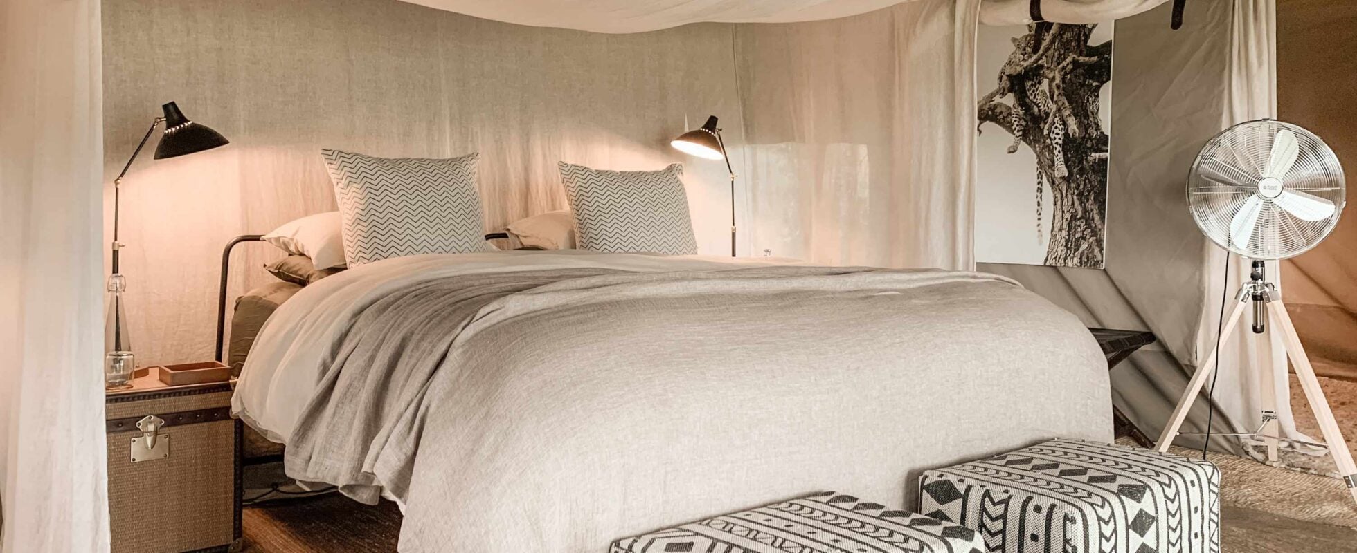 Perché sur les hauteurs de la région de Nyasirori, au cœur de la partie occidentale du Serengeti, le Mila Tented Camp donne l’impression de se retrouver dans le film « Out of Africa ». Avec seulement 5 tentes doubles et 1 tente familiale, le camp promet un luxe paisible et une grande intimité. La décoration des tentes s’inspire des tribus locales et des couleurs nude. Un lit confortable, des ventilateurs, une salle de bains attenante et la possibilité d’observer la faune tout autour du camp… Voici tout ce dont vous avez besoin pour vous détendre après une journée de safari sur les chemins poussiéreux du parc national du Serengeti. Ajoutez à cela des repas savoureux et un feu de camp chaleureux, et vous pourriez peut-être avoir envie de prolonger votre séjour !