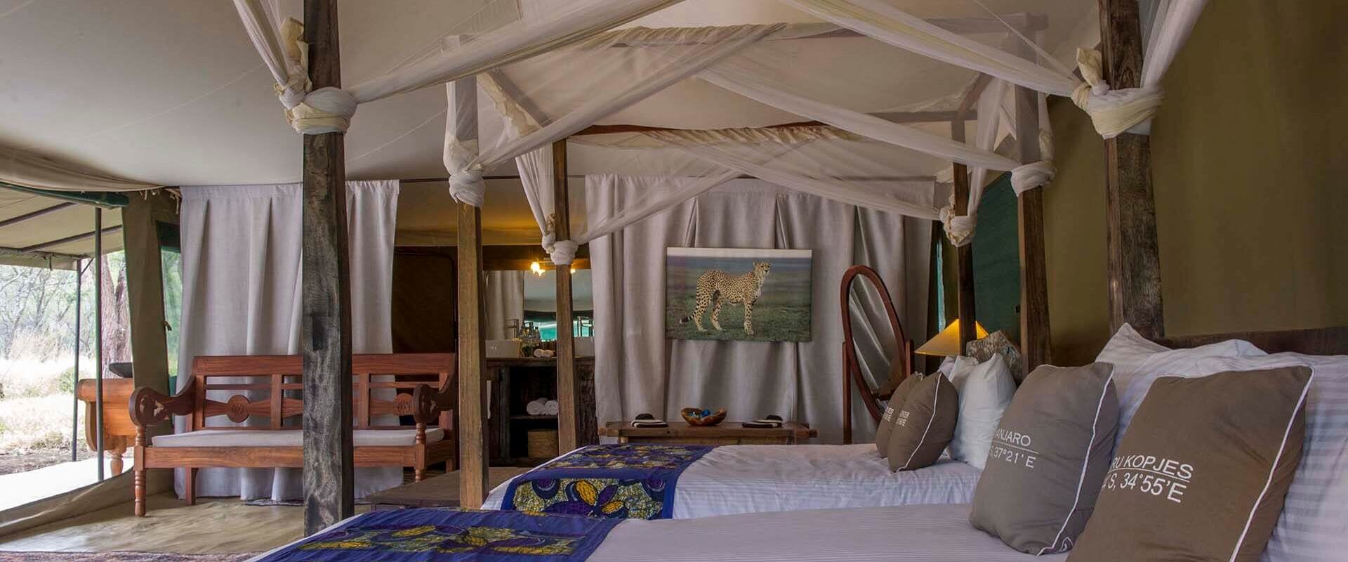 Le Naona Moru Camp, qui signifie je vois Moru, est situé en hauteur, près des Moru Kopjes, de gros blocs rocheux qui laissent entrevoir les légendaires plaines dorées du parc national du Serengeti. Cette région du sud du parc permet d’observer les animaux sauvages tout au long de l’année. Pendant la saison, vous pourrez voir passer des milliers de zèbres et de gnous lors de la Grande Migration. De plus, le Naona Moru Camp offre tout le luxe nécessaire pour passer un séjour des plus agréables : une délicieuse cuisine de brousse, un service de qualité, et même le wifi. Le soir venu, rejoignez votre suite sous tente équipée d’un grand lit confortable, de linge de lit blanc de haute qualité, d’un minibar, d’une grande salle de bains et d’espaces intérieurs et extérieurs accueillants.