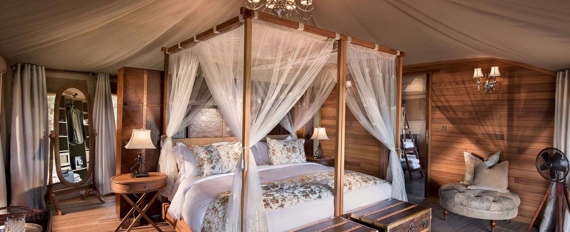Le campement de One Nature Nyaruswiga dans le parc national du Serengeti ne vous laissera pas indifférent. Les tentes sont belles et très spacieuses, avec un mobilier luxueux de style classique, de belles salles de bains et des douches extérieures. Les grands canapés confortables, les lits à baldaquin remplis de coussins, le feu de bois à l’intérieur de la tente, la baignoire classique ouverte dans la chambre à côté de ce feu… tout cela témoigne d’un luxe que vous trouverez rarement ailleurs. Le camp compte 12 tentes conçues pour 2 ou 3 personnes et 2 tentes familiales pouvant accueillir jusqu’à 6 personnes. En outre, il dispose d’un salon luxuriant, d’un restaurant avec du lin blanc, de la belle porcelaine, des verres en cristal et des lustres en argent, et d’une piscine à débordement avec jacuzzi. En plus de cela, il y a un pont d’observation astral où vous pouvez prendre votre dîner avec le télescope juste à côté de vous pour observer les étoiles.